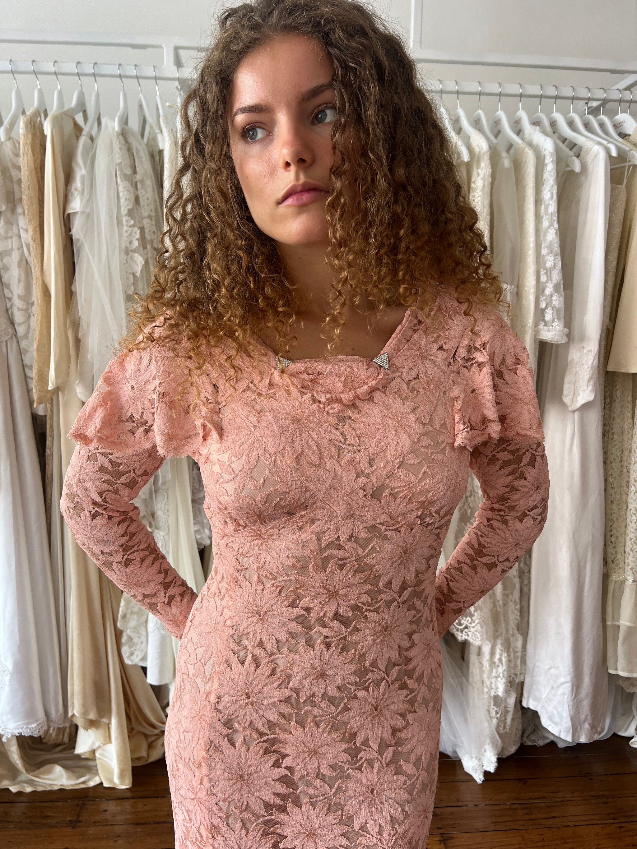 Material: Chantilly lace, metal adorned with glass gems and silk synthetic blend slip