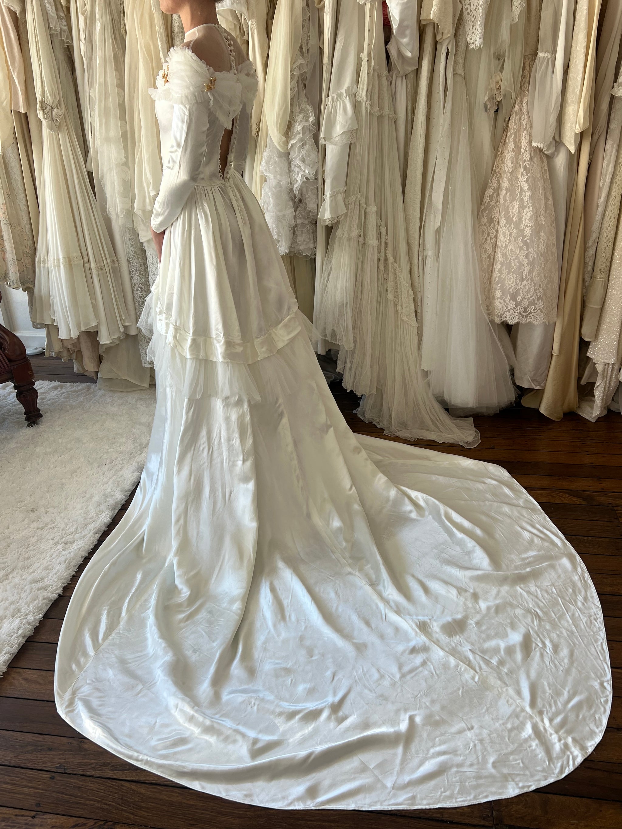 We get to hear about how old the dress is, when the dress was made and by whom, see photos of the original bride wearing the dress and hear all about its history.
