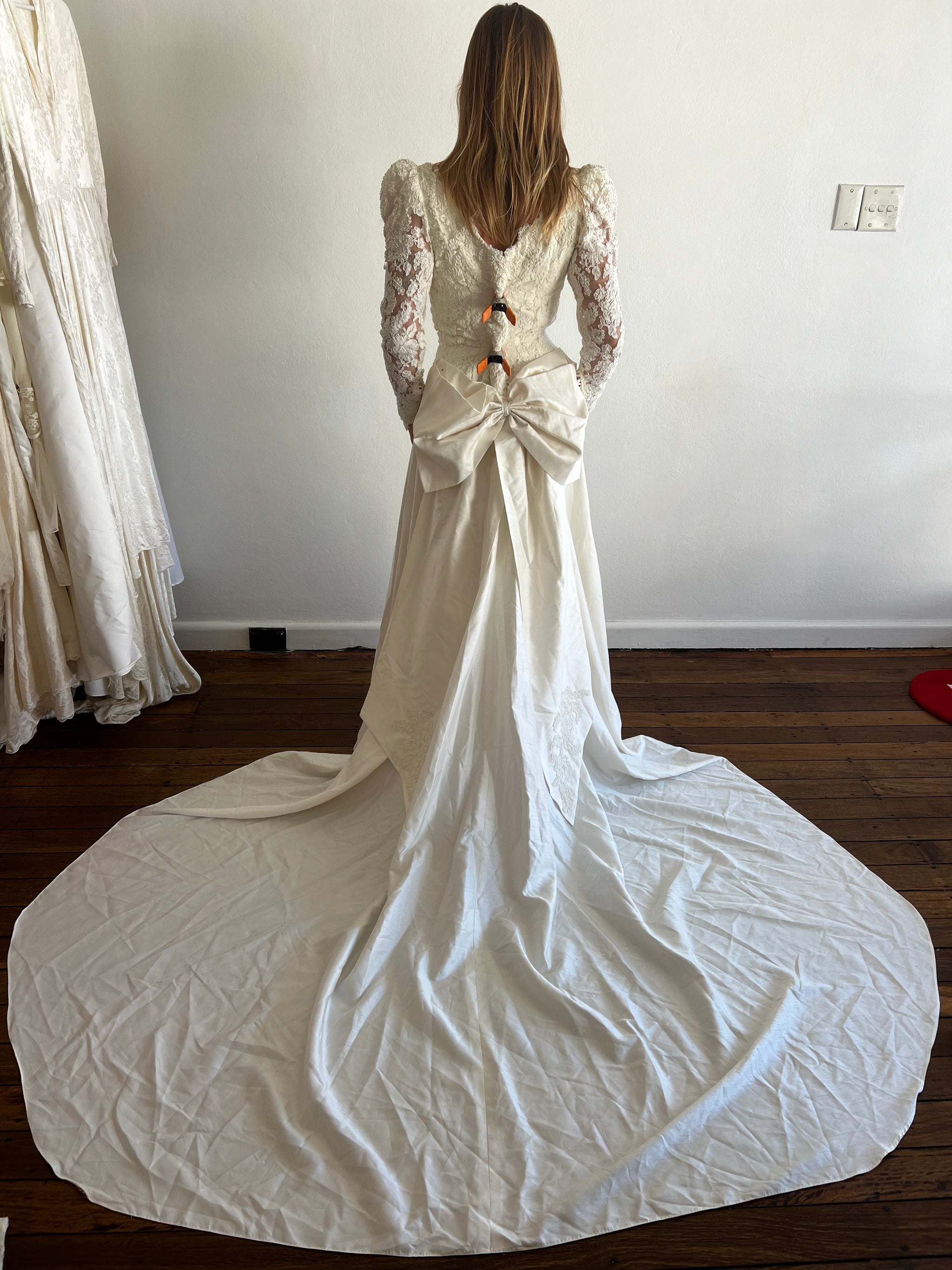 1978 Raw Silk Beaded Lace Bodice Dress