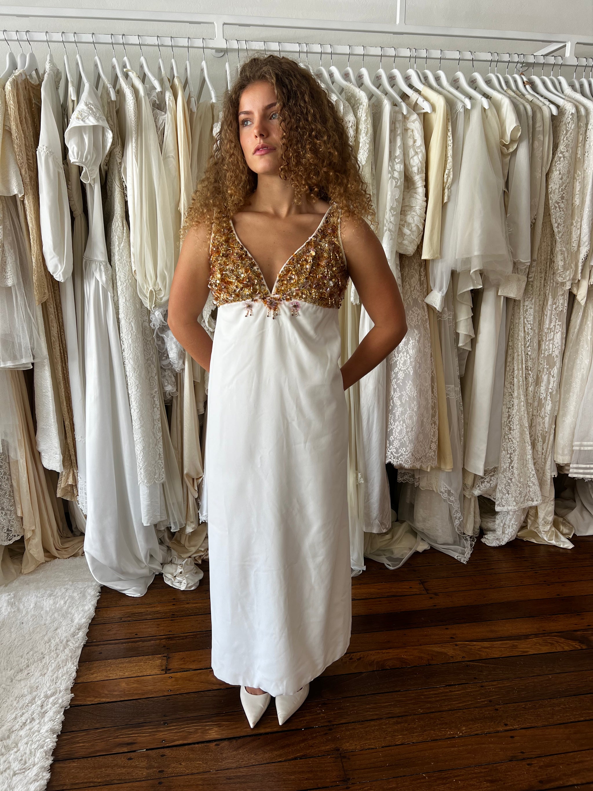 Material: Jersey knit and synthetic beads and sequins